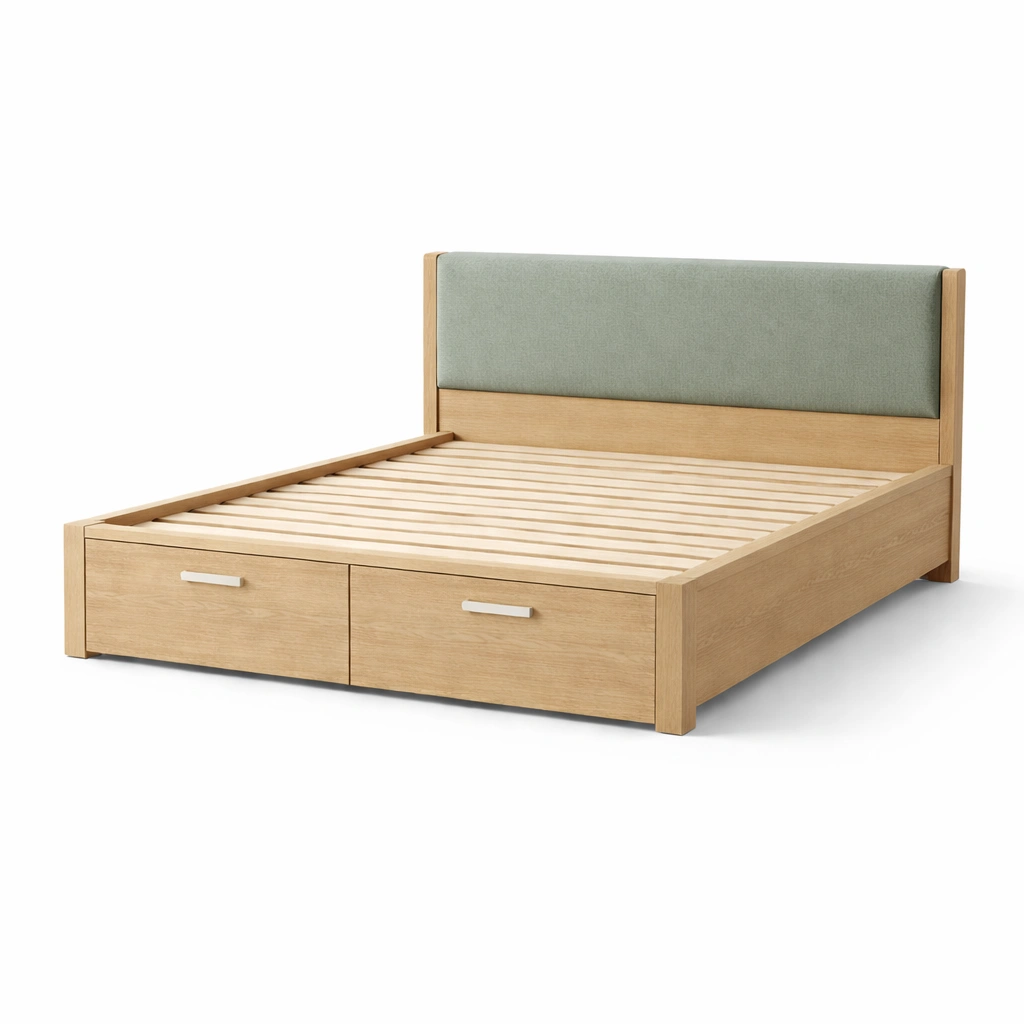 Cama con almacenamiento de Madera con Cabecero de Tela y Cajones