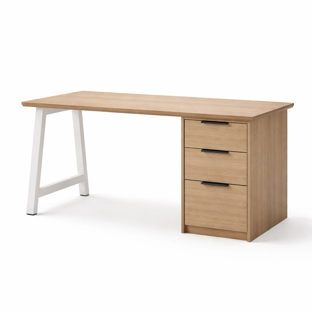Escritorio de Madera con Cajonera y Patas Metálicas 150x60x75 cm