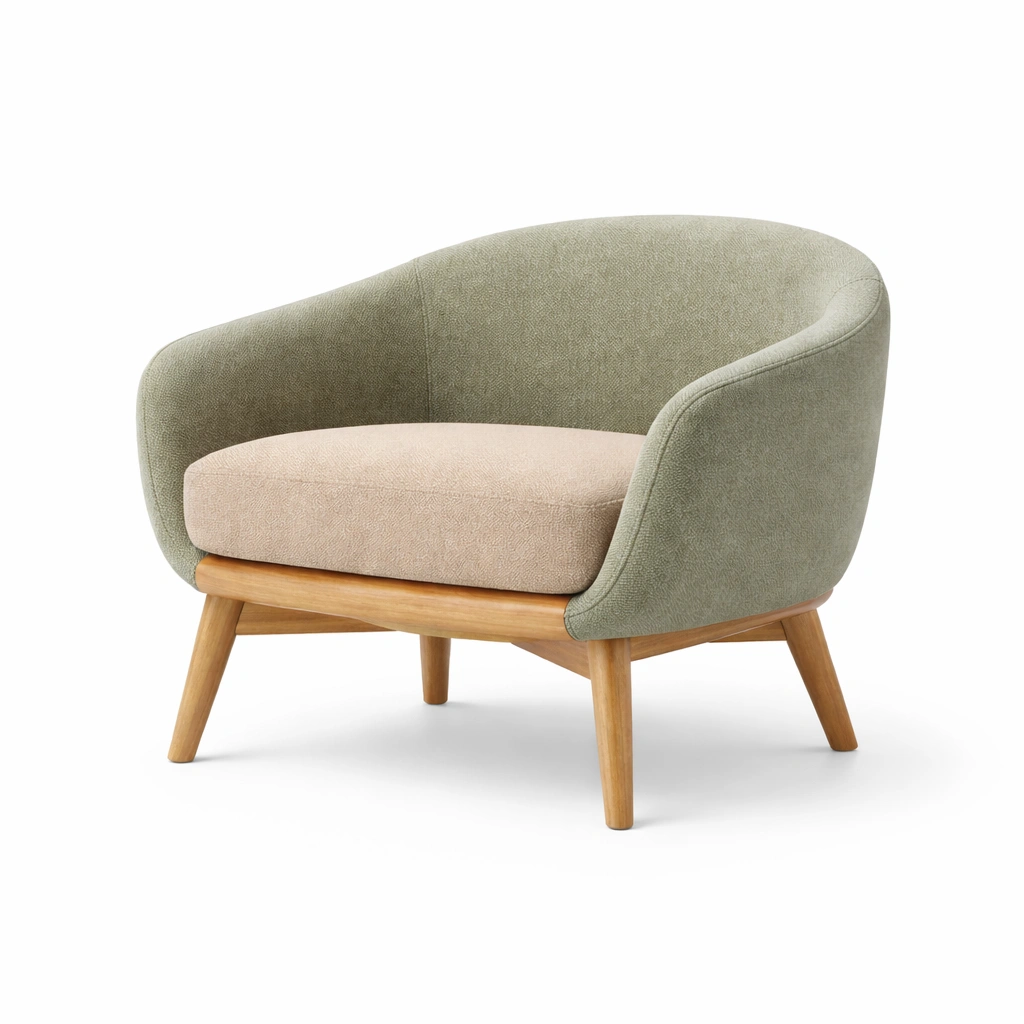 Sillón de madera y tela de poliester verde y beige