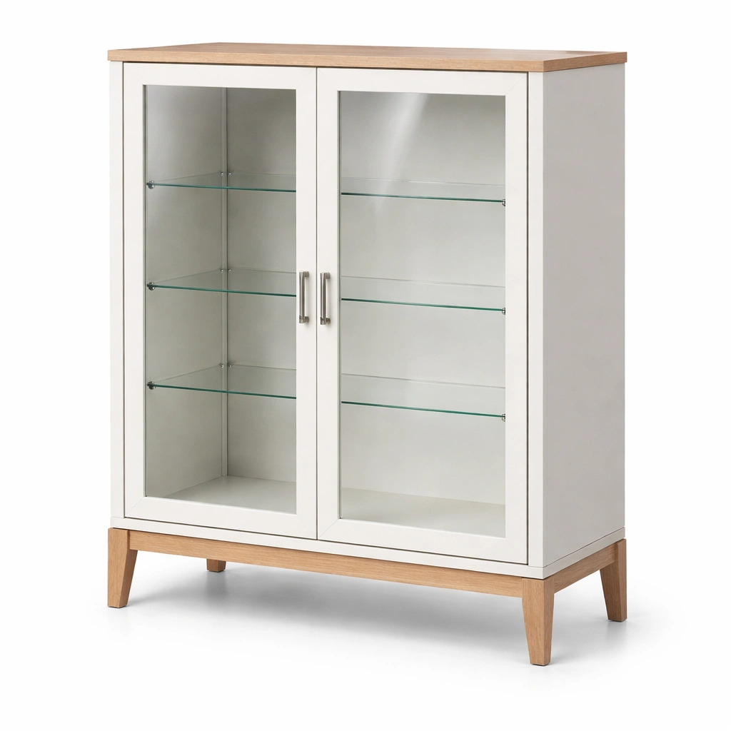 Vitrina de madera mdf con vidrio templado y roble